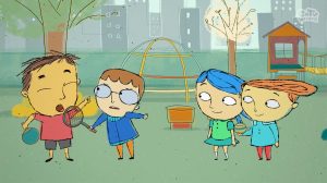 Petit y sus amigos juegan en el patio de aquel a las carreras; Petit se cree el más rápido, pero no le será posible demostrarlo ya que su mamá le pide que juegue con su hermana Tina, pero esta es muy pequeña y no sabe caminar y, por lo tanto, correr. Todos tratan de enseñarle a caminar y a que corra, pero obviamente no lo logran y solo obtienen un fuerte llanto de la niña cada vez que se cae y se golpea, hasta que a Petit se le ocurre que Tina se desplace con las rueditas de su bicicleta; hacen una carrera y Tina sale victoriosa pero ahora será Petit el que se caiga y llore porque no sabe andar en bicicleta sin las rueditas que le paso a su hermana.